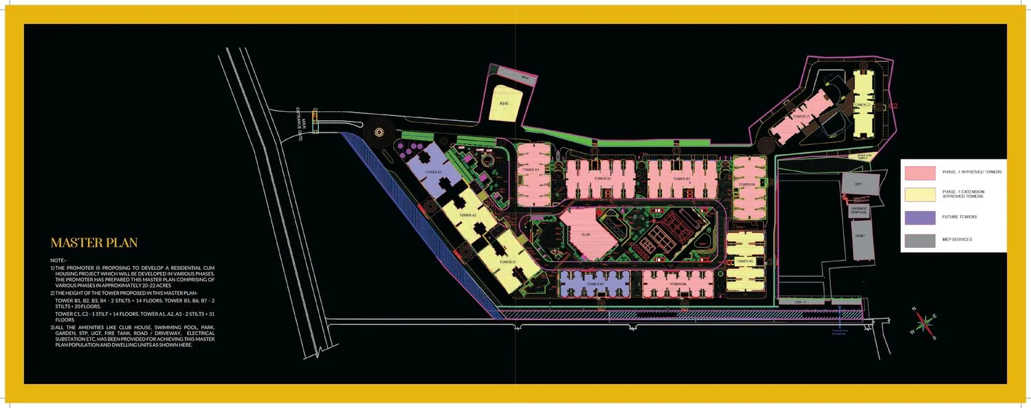 Assotech World Avenue 07 is thoughtfully planned across multiple acres in Hanspal, Bhubaneswar, featuring 5 towers with 25 floors and approximately 1,378 residential units. The project is developed in 2 phases, with Phase 1 scheduled for July 2029 and Avenue 17 (Phase 2) expected by December 2029.