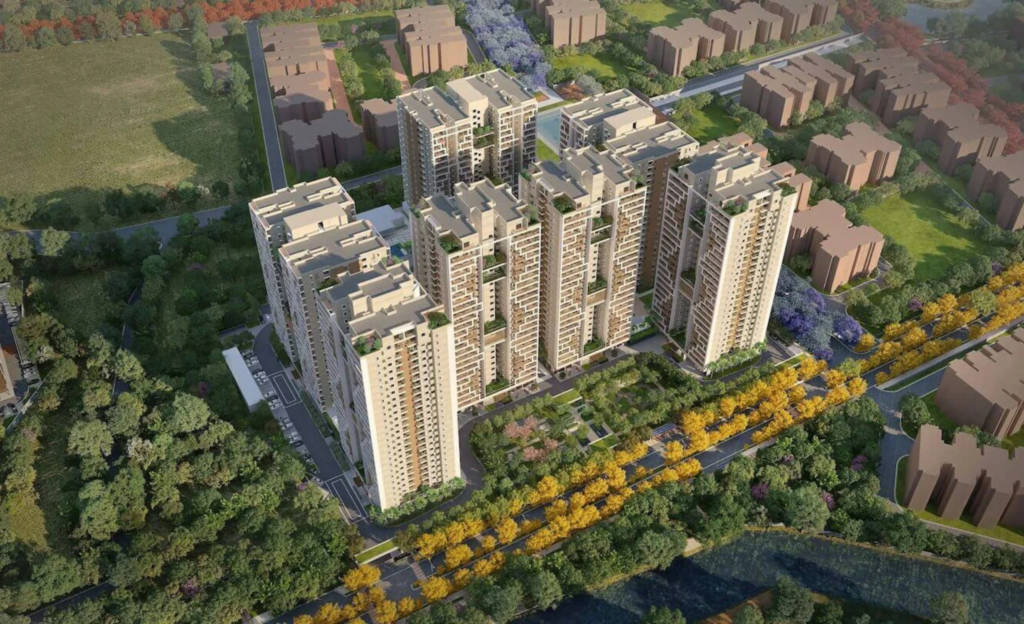 The project offers 3 BHK and 4.5 BHK apartments, designed with spacious layouts and modern amenities.