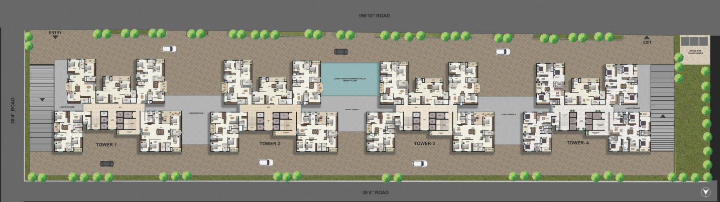 The master plan of Dions Sky Walk has been thoughtfully crafted to deliver a modern, community-focused lifestyle within 1.64 acres of prime land in CDA Sector-8, Cuttack. Designed across 4 elegant towers rising up to 22 floors, the development offers around 482 residential units, ensuring a vibrant yet well-organized neighborhood.