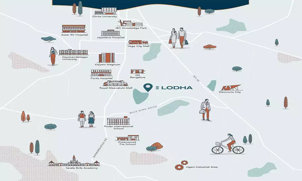 Lodha Azur is strategically situated in Akshayanagar, near Bannerghatta Road, South Bangalore, offering excellent connectivity to major hubs across the city. Its prime location ensures residents can easily access key commercial, educational, healthcare, and entertainment centers.