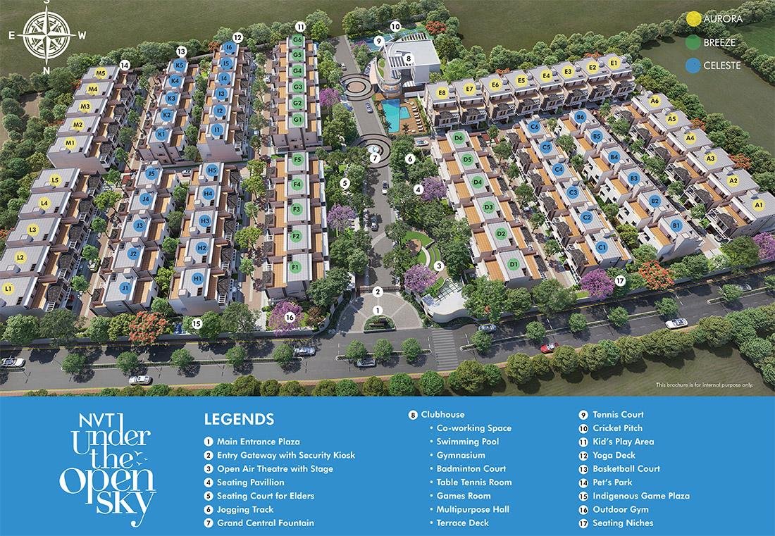 NVT Under The Open Sky is located at Budigere Cross, near Old Madras Road, Bangalore, offering excellent connectivity to IT hubs, schools, malls, and hospitals.