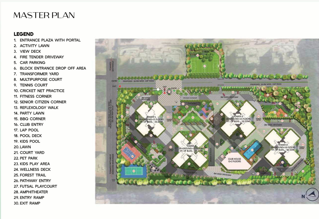Residents will enjoy a host of world-class amenities, including beautifully landscaped gardens, fully equipped conference rooms, a multipurpose clubhouse, swimming pools, a fitness center, and a range of sports facilities, all designed to enhance the living experience.