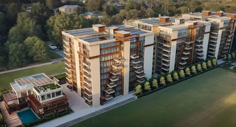 Over 18 world-class amenities including clubhouse, sports facilities, landscaped gardens, mini theater, and EV charging stations.