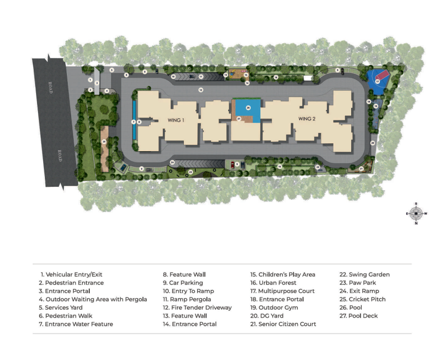 The master plan of LS Sakura is thoughtfully designed to create a harmonious living environment that balances modern amenities, green spaces, and community-focused layouts. Spread across 2.01 acres, the development comprises 132 well-planned 2 and 3 BHK apartments, catering to mid-sized and larger family needs.
