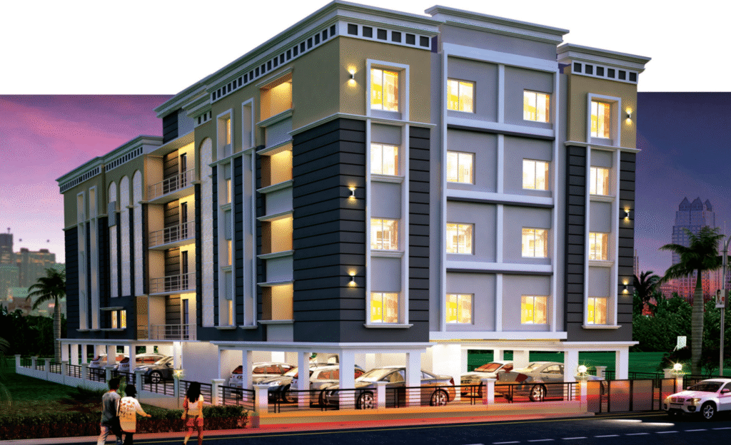 Sradha Aangan by Sanjita Projects in Hanspal, Bhubaneswar offers 2 & 3 BHK premium apartments with modern amenities, landscaped greens, and excellent connectivity, with possession by March 2026.