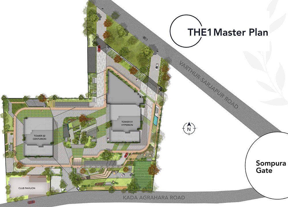 Suyug The 1 is a luxury high-rise residential project near Sompura Gate, Sarjapur Road, Bangalore. Spread over 3.51 acres with two 31-storey towers, it offers 1, 3 & 4 BHK premium apartments along with a 65,000+ sq. ft. clubhouse, 82% open space, and IGBC pre-certified eco-friendly features.