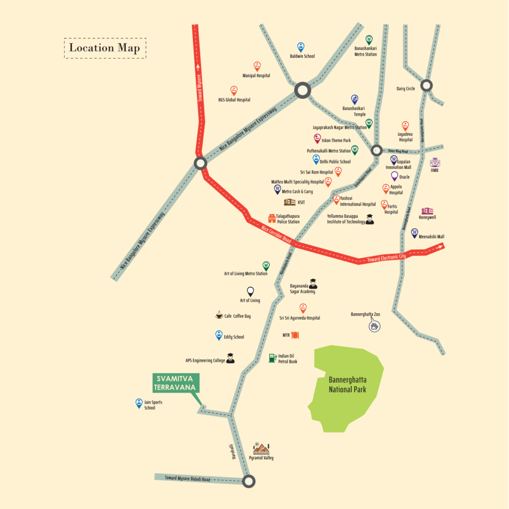 Strategically positioned with excellent road networks and proximity to key hubs, the Location Map highlights seamless connectivity to business districts, schools, healthcare, and lifestyle destinations—ensuring effortless access to every urban convenience while staying rooted in a premium neighborhood.